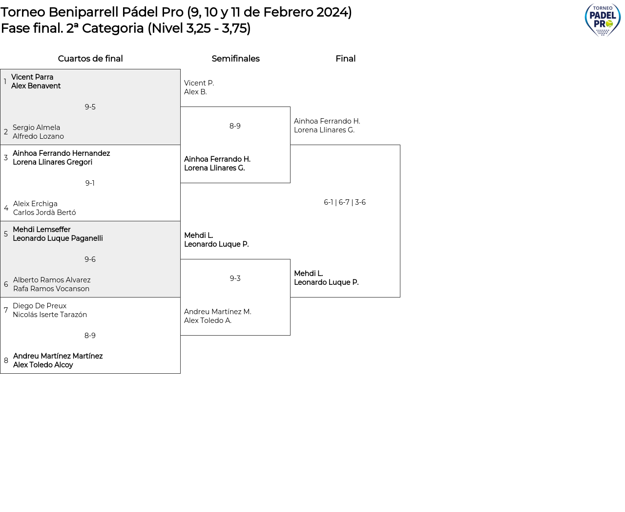 Cuadro principal 2ª Categoria (Nivel 3,25 - 3,75)