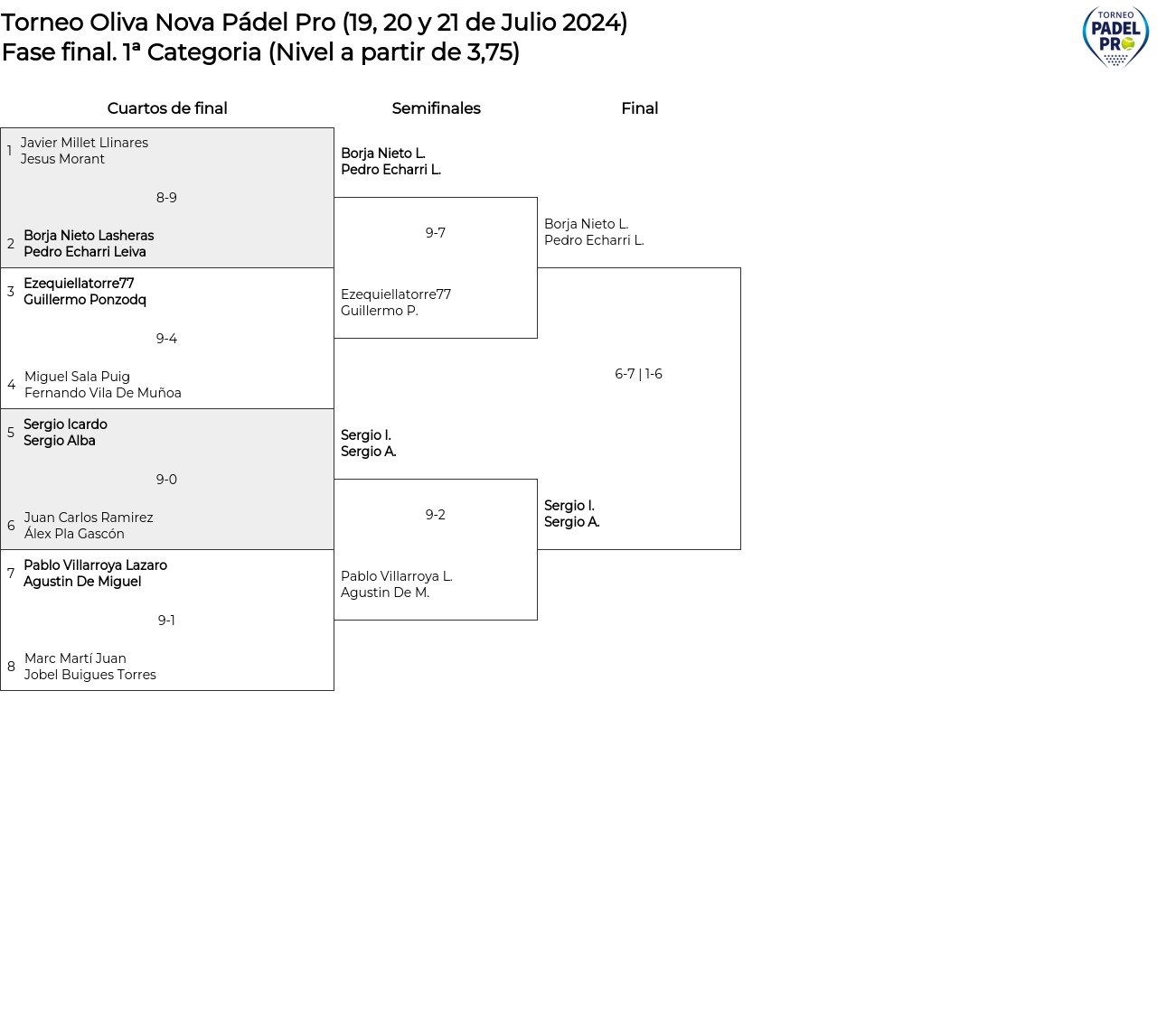 Cuadro principal 1ª Categoria (Nivel a partir de 3,75)