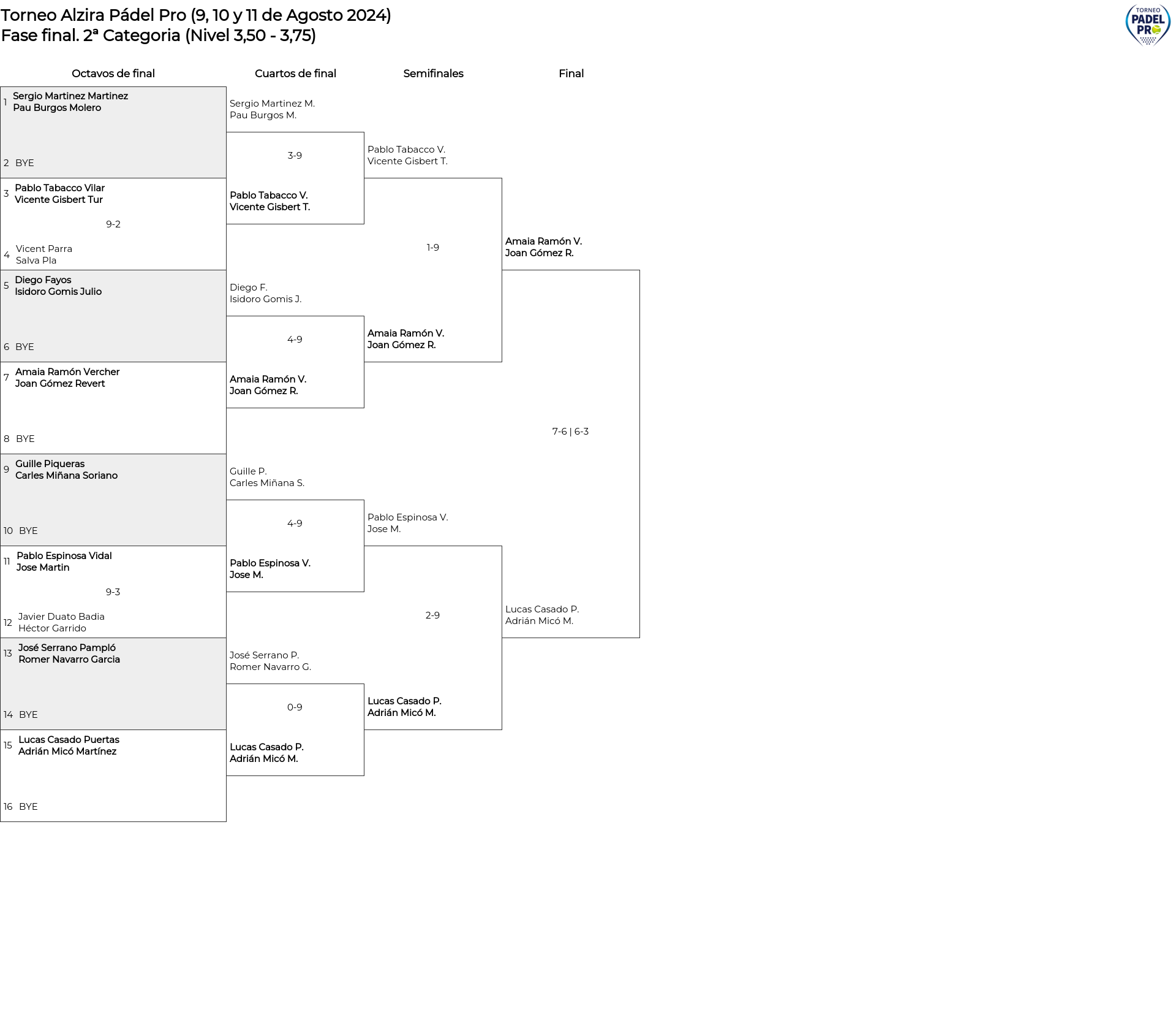 Cuadro principal 2ª Categoria (Nivel 3,50 - 3,75)