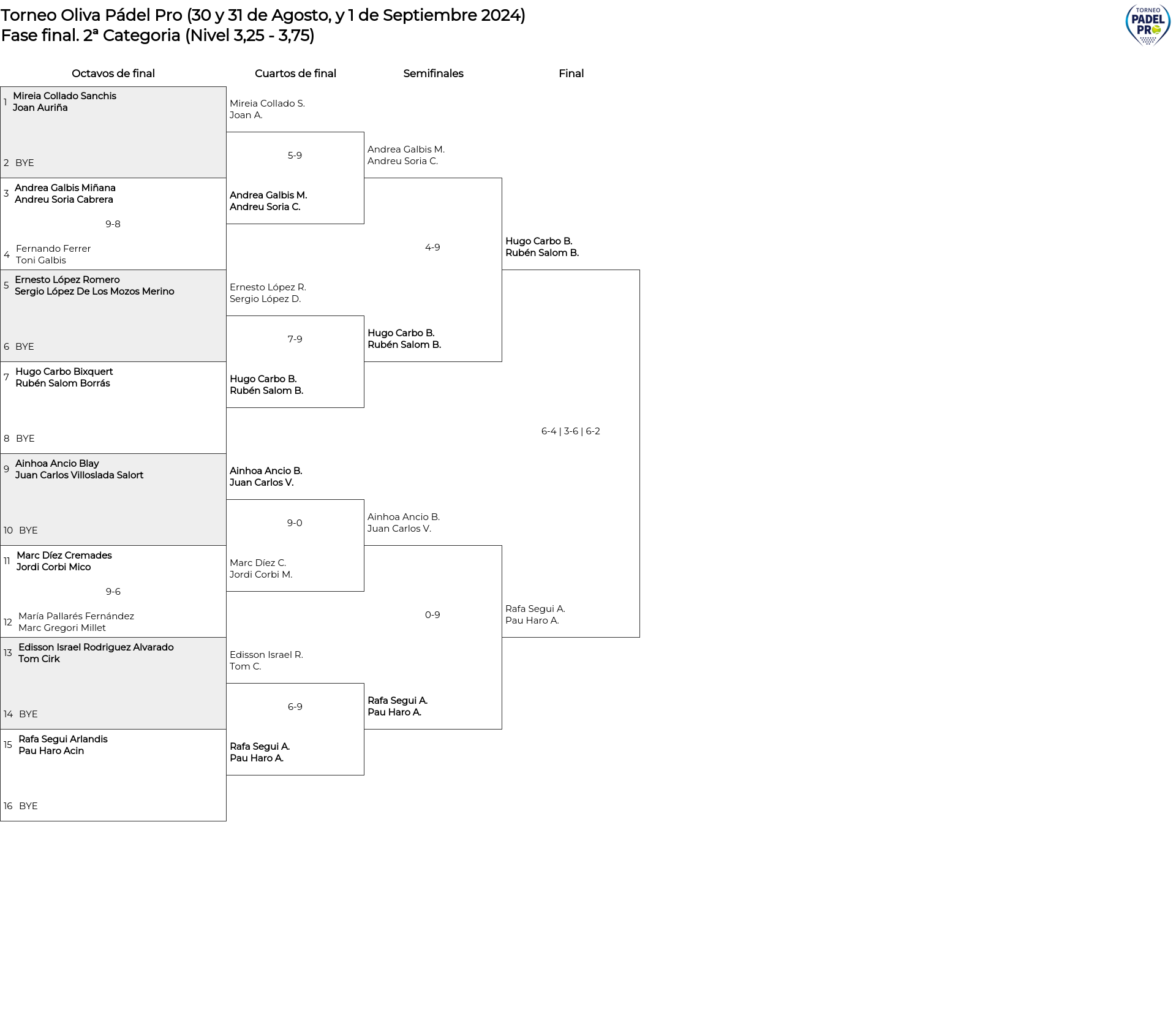 Cuadro principal 2ª Categoria (Nivel 3,25 - 3,75)