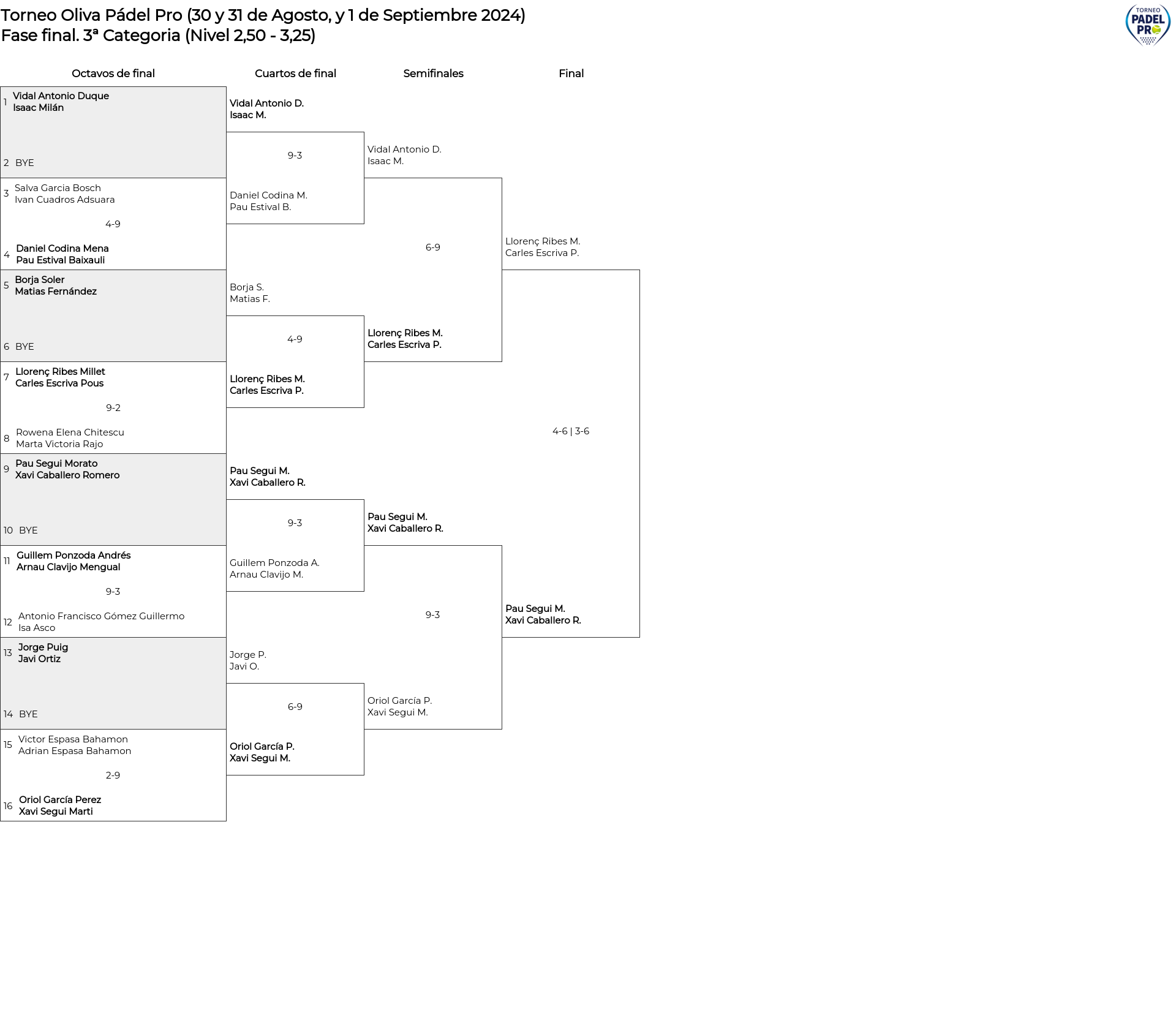 Cuadro principal 3ª Categoria (Nivel 2,50 - 3,25)