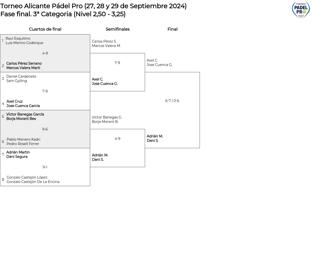 Cuadro principal 3ª Categoria (Nivel 2,50 - 3,25)