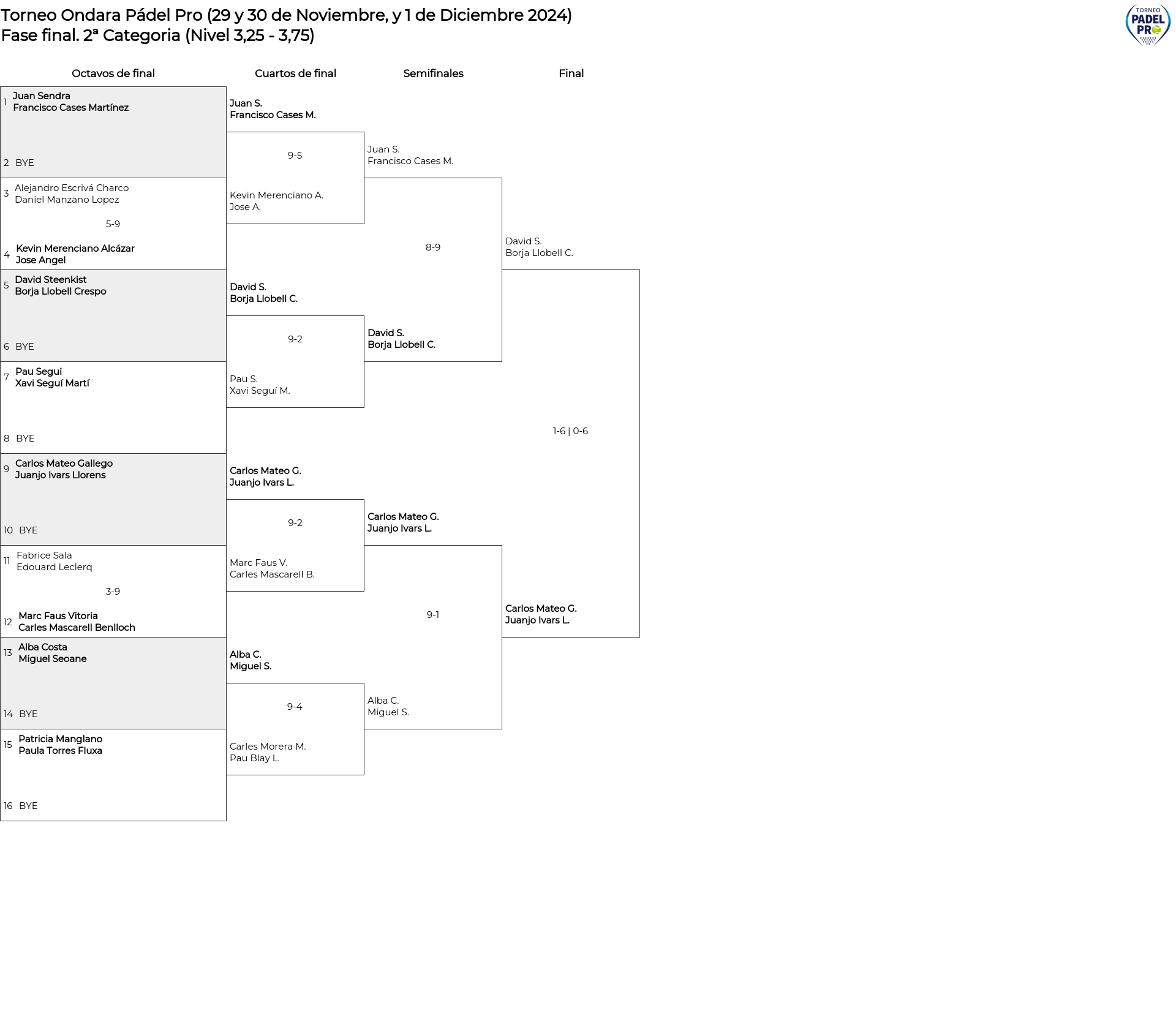 Cuadro principal 2ª Categoria (Nivel 3,25 - 3,75)