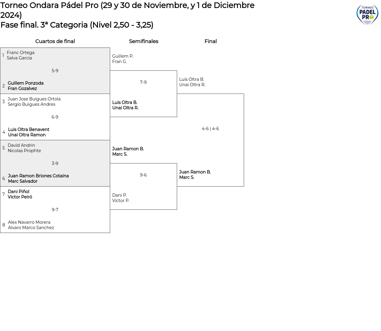 Cuadro principal 3ª Categoria (Nivel 2,50 - 3,25)
