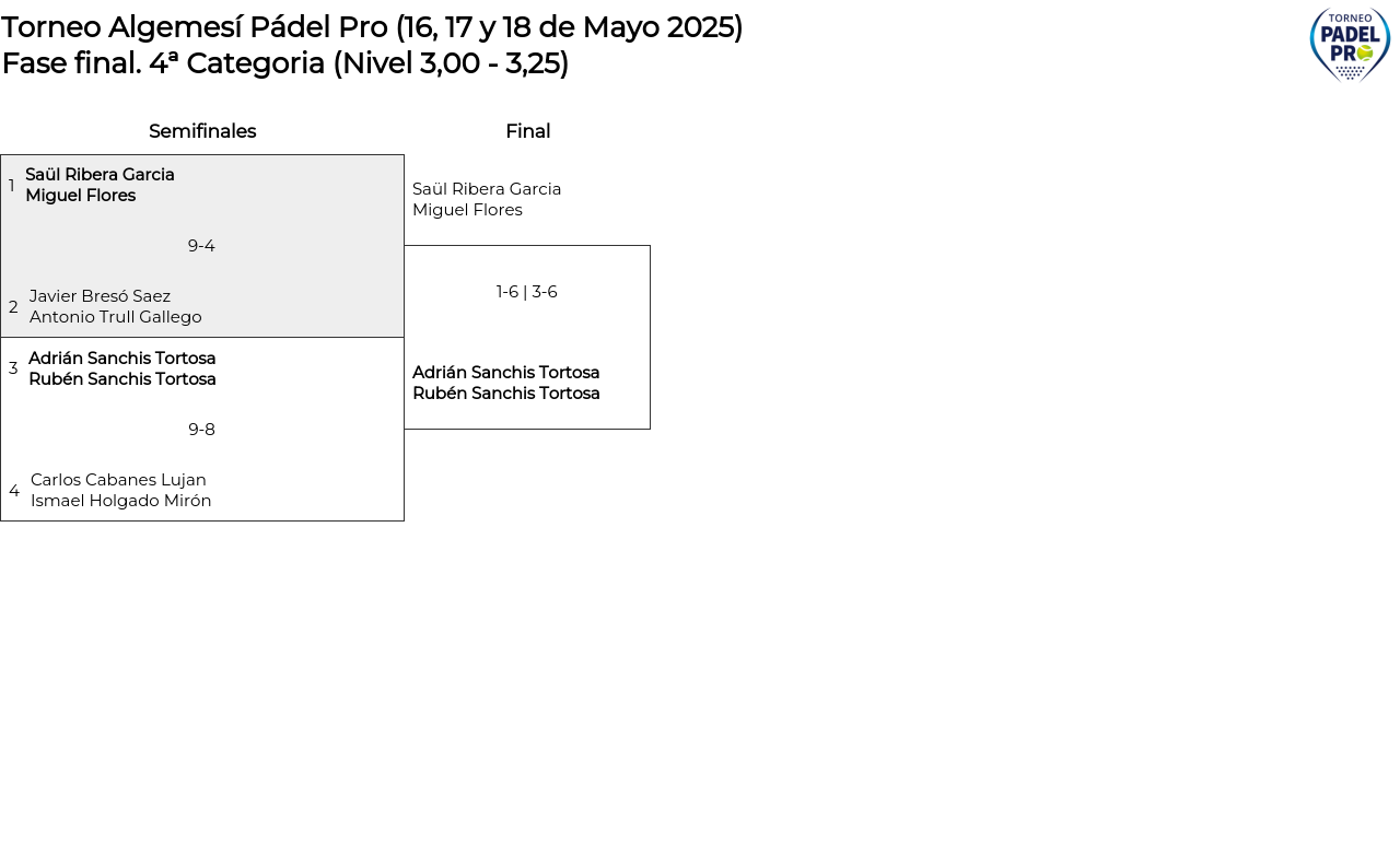 Cuadro principal 4ª Categoria (Nivel 3,00 - 3,25)