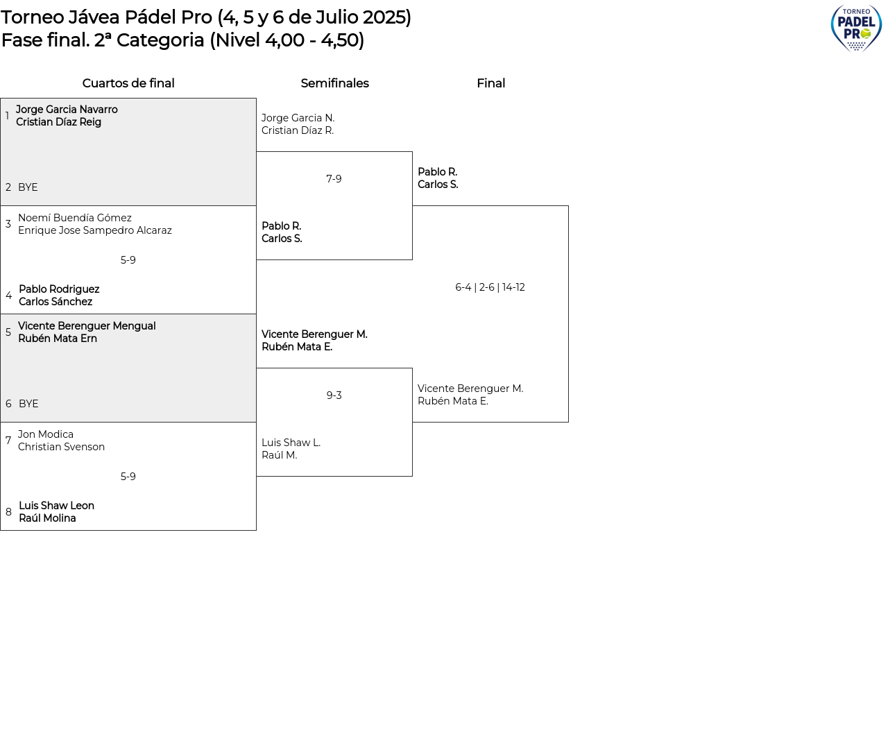 Cuadro principal 2ª Categoria (Nivel 4,00 - 4,50)